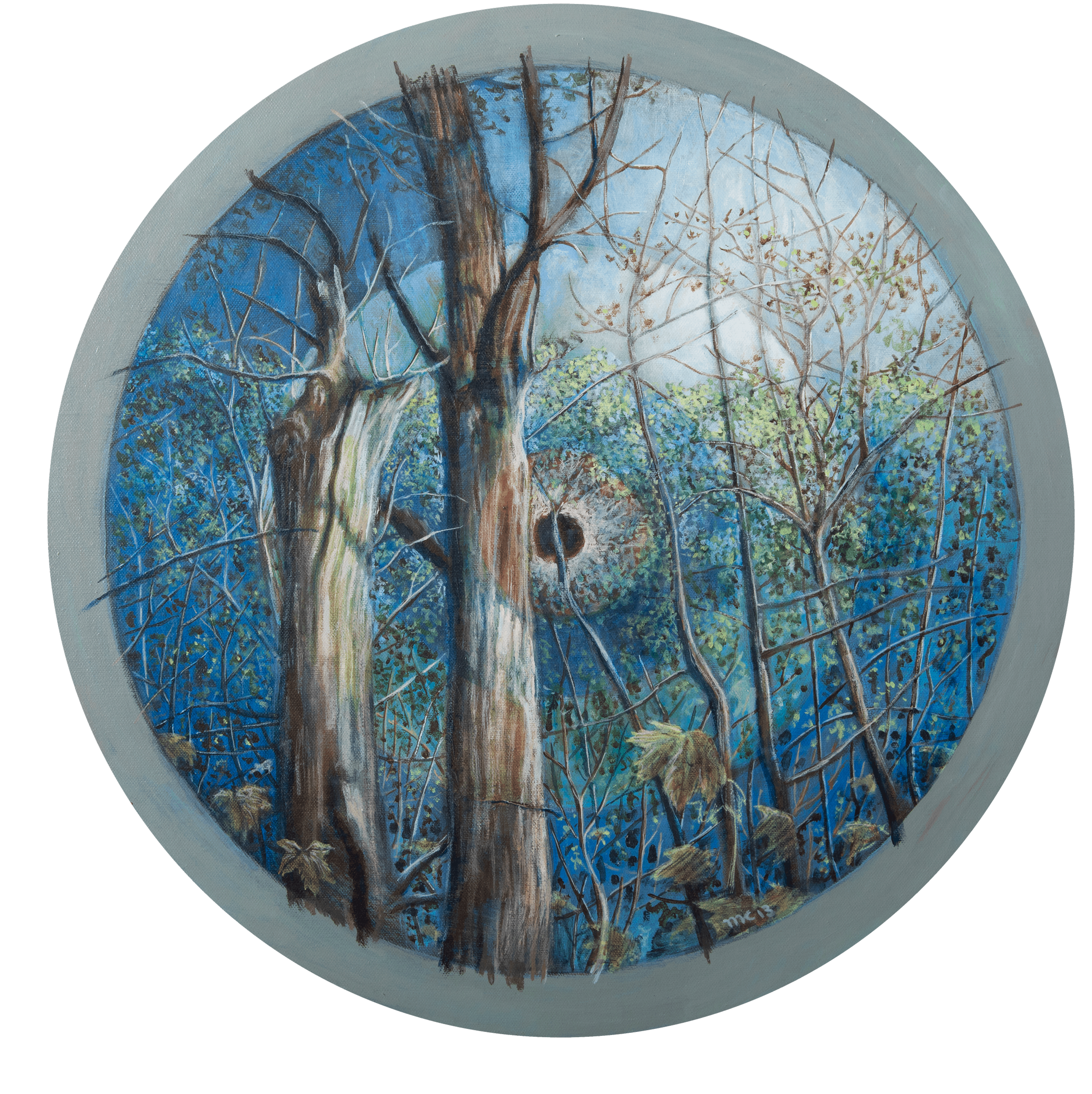 But they were often not significant enough in bushes or wilder places and more to be seen in the sky or on other plain places, So I left them out and focused more on the circulars. They gave me some freedom not only to use the colors I found in nature but also imagined and with the time the meaning of endangerment faded away and the round shape became the positive sign of the sphaira, the connection with the universe.